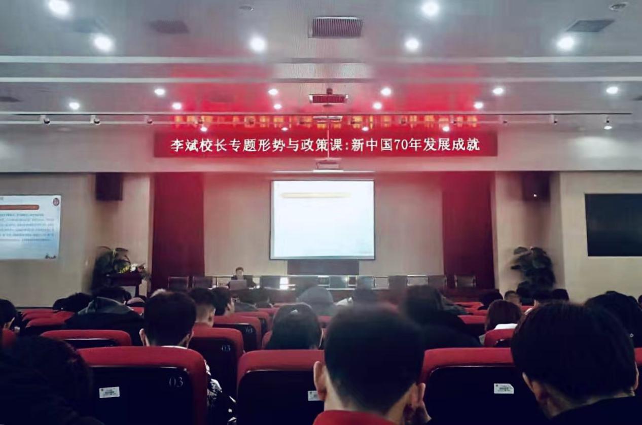 2019年12月13日下午3:00公司党委委员、副董事长李斌在图书馆二楼B201报告厅为公司师生主讲政治理论课——新中国70年发展成就。