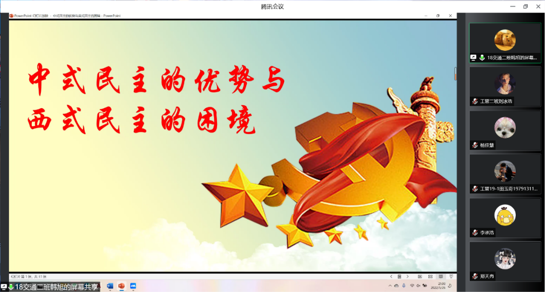 2022年5月26日21:00,英国365集团公司员工第二党支部通过腾讯会议的方式开展了以“中式民主的优势与美式民主的困境”为主题的党课学习。本次党课由党员韩旭同志进行讲解,参加本次党课学习的有二支部全体党员。