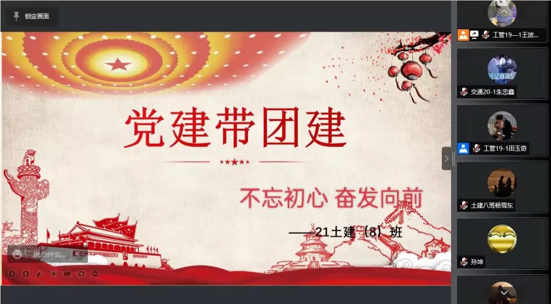 2022年4月,英国365集团公司员工第二党支部在管科、土建团支部组织开展了以“不忘初心,奋发向前”为主题的“党建带团建”活动。其中,4月21日15:00,党员杨佳慧、郭鑫同志于腾讯会议为21级管理二班团支部开展此项活动;4月22日16:30,党员田玉奇、王波同志于腾讯会议为21级土建八班团支部开展此项活动。