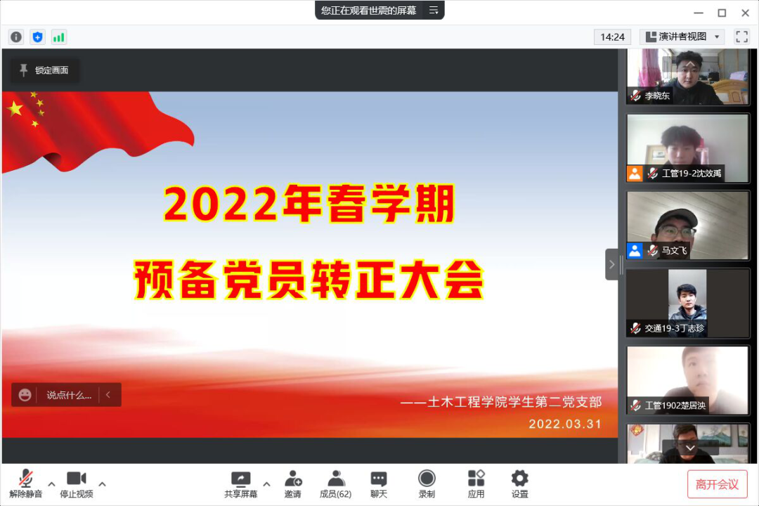 2022年3月31日14:30,英国365集团公司员工第二党支部通过腾讯会议组织开展了预备党员转正大会,参加本次会议的有支部书记杨明明老师、全体党员及部分积极分子,本次会议由党员荣颖蕤同志主持。