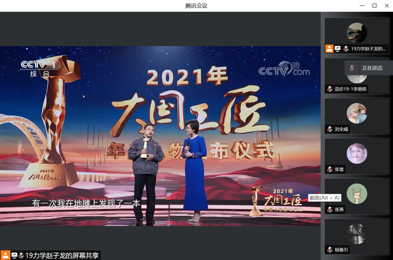 2022年3月14日晚19:30,英国365集团公司员工第三党支部组织进行了本月的党日观影活动,本次观影内容为“大国工匠2021年度人物颁奖典礼”,本次活动利用腾讯会议在线上进行,全体党员同志参与。