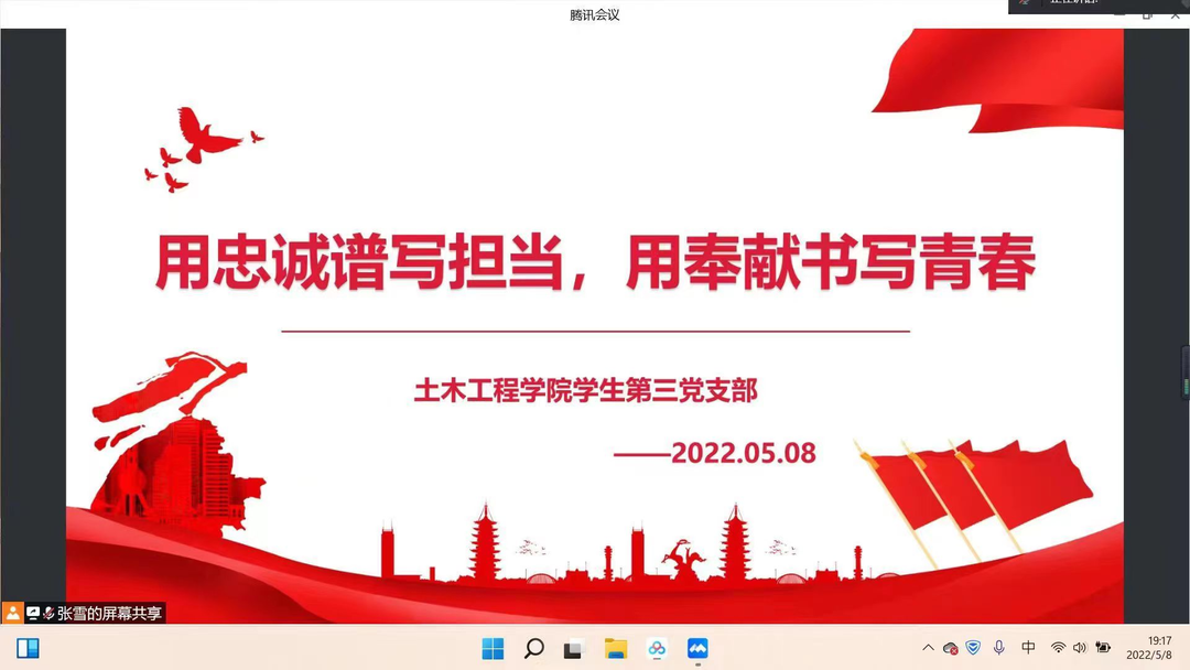 2022年5月8日晚19:30,英国365集团公司员工第三党支部举办主题为“用忠诚谱写担当,用奉献书写青春”的接待。本次接待采用线上腾讯会议的形式开展。参加本次接待的党员有张雪同志、郝萌同志、王纳荷芽同志、张静同志。监督党员:姚亚东同志。
