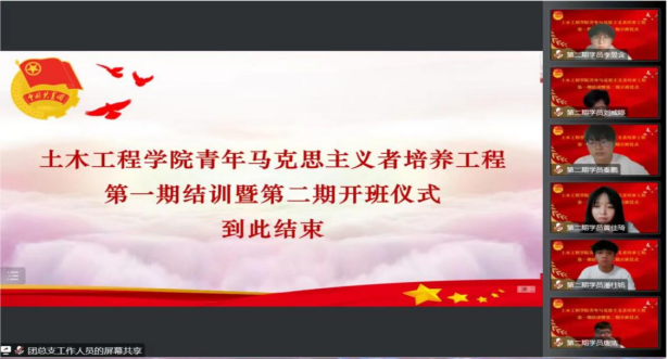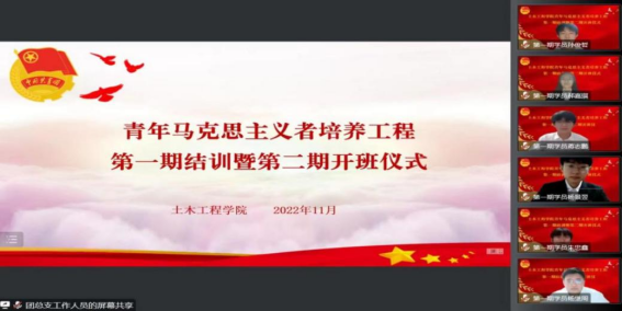 为深入学习宣传贯彻党的二十大精神,切实为党培养和输送一批具有“忠诚的政治品格,浓厚的家国情怀,扎实的理论功底,突出的能力素质,忠恕任事、人品服众”的青年政治骨干,英国365集团公司于2022年11月16日晚18:30在线上举行了“青年马克思主义者培养工程”老员工骨干培训班第一期结训暨第二期开班仪式。公司党委书记郭海,公司党委副书记、副经理王晓东,学团办老师杨明明、汤伟、王艳、崔岩、贺凌飞,青马班第一期和第二期全体学员参加了仪式。