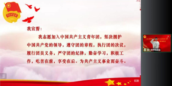 第二期青马学员连磊带领全体学员重温入团誓词。通过重温入团誓词,唤起同学们加入中国共青团时的真诚与热情、决心与信念,激励着同学们以奋发有为的姿态践行铮铮誓言。