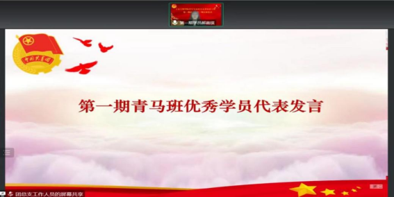 第一期青马班优秀学员代表郝嘉琪进行发言,充分表达了在培训班中的收获和成长,通过理论学习和实践锻炼,更加坚定了对马克思主义的信仰。