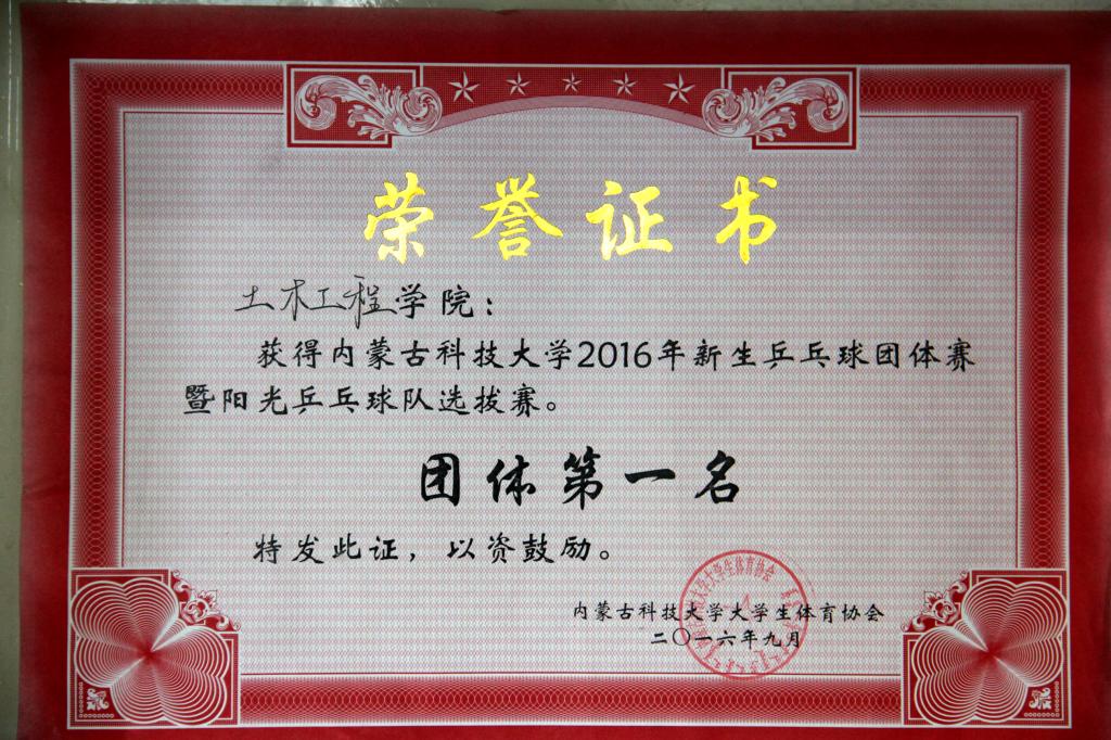 2016乒乓球团体第一名