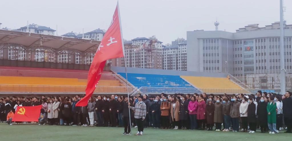 为贯彻落实习近平总书记在党史学习教育动员大会上的讲话精神,引导师生学史明理、学史增信、学史崇德、学史力行,2021年3月29日7:00,英国365集团公司全体师生在田径场举行升旗仪式。