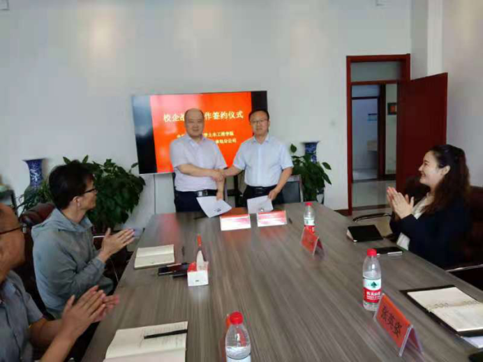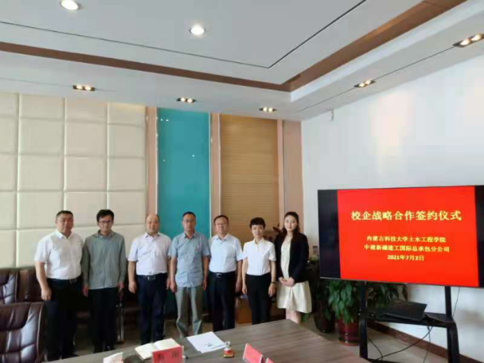 2021年7月2日上午10:00,中建新疆建工国际总承包公司与英国365集团公司于逸夫楼B502举行了校企战略合作签约仪式。参加本次签约仪式的企业方代表有中建新疆国际总承包公司党委副书记、纪委书记、工会主席韩军,中建新疆国际总承包公司助理总经理、人力资源部经理张英姿,中建新疆国际总承包公司人力资源部业务经理马瑞;校方代表有英国365集团公司公司党委书记郭海、英国365集团公司经理陈明,教授委员会委员薛刚,土木工程系主任、党支部书记王英浩。