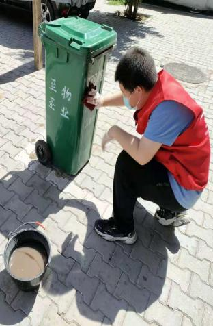 炎炎烈日下,志愿者们精神饱满,积极参与到各项工作中,崇尚劳动、热爱劳动、辛勤劳动、诚实劳动,用实际行动倡导文明理念。志愿者们手持抹布、扫把等清理工具,熟练而有序地忙碌着,对社区树池内烟头及动物粪便、垃圾桶进行仔细地清扫、清洗,不留卫生死角,并将社区内影响安全消防通道及杂乱摆放的自行车进行了统一规范摆放。