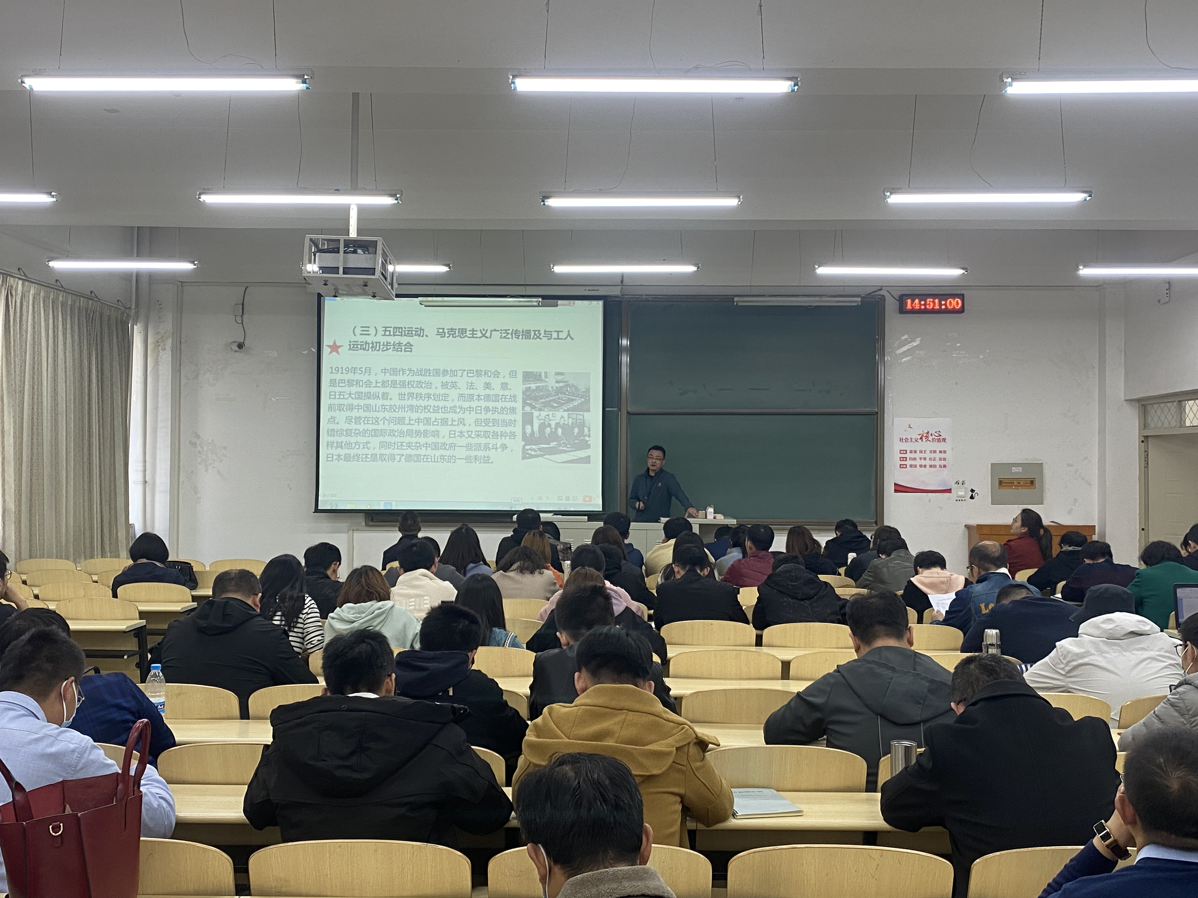 2021年10月21日14:30,英国365集团公司于逸夫楼G104组织全院教职工及员工第四党支部、研究生党支部全体党员进行政治理论学习,公司党委副书记王晓东作了题为“中国共产党团结带领人民进行革命、建设、改革的百年光辉历程——学习《中国共产党简史》”的专题报告。