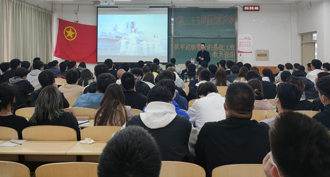 10月23日下午16:25分,贺凌飞老师以“筑牢民族复兴的基础工程--教育强国”为题开展团课。贺老师首先讲述了共青团和共产党的性质,然后按照时间顺序讲述了习近平总书记关于教育的重要论述,从不同方面解读了高等教育的重要意义,接着通过《学习的背叛》教育影片,使同学们明白努力学习的意义。通过贺老师本节课的讲述,同学们明白了大学勤奋学习的必要性和紧迫性,坚定了努力成为德智体美劳全面发展的社会主义建设者和可靠接班人的信心和决心。