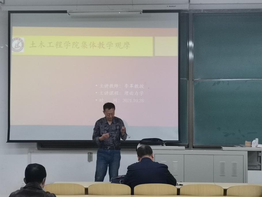 2021年10月28日下午14:30,英国365集团公司在逸夫楼G104组织全体教师进行教学观摩,观摩内容为学院优秀教师代表李革教授的理论力学课。