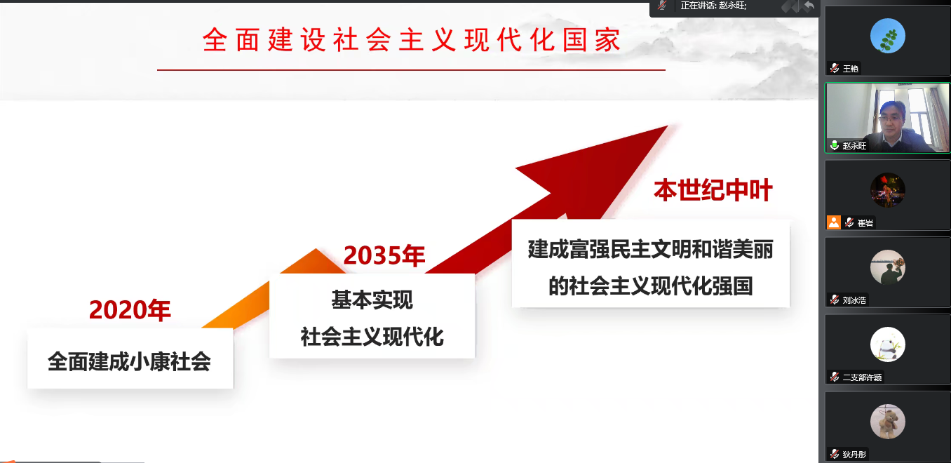 赵永旺从党的二十大报告的逻辑架构、理论要点、贯彻落实三个方面进行了深入解读,对报告主体结构和主要内容进行详细讲述,从大会主题及中心任务、三件大事、中国式现代化、全面建设社会主义国家、五个必由之路、自我革命6个方面对报告中的理论要点进行深刻分析。