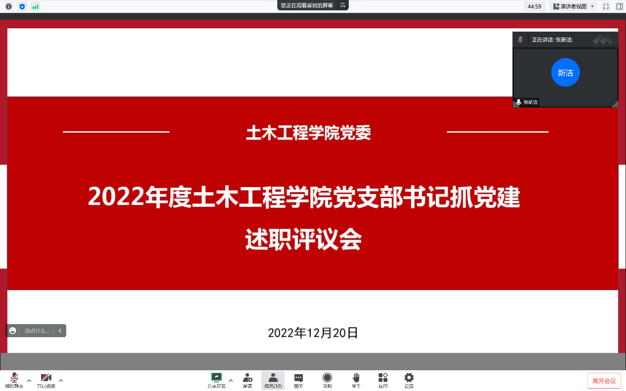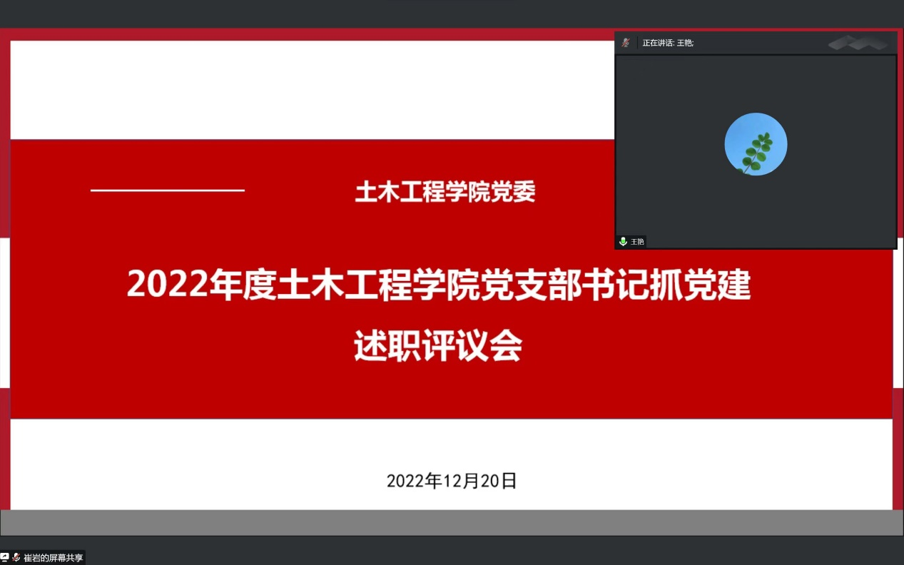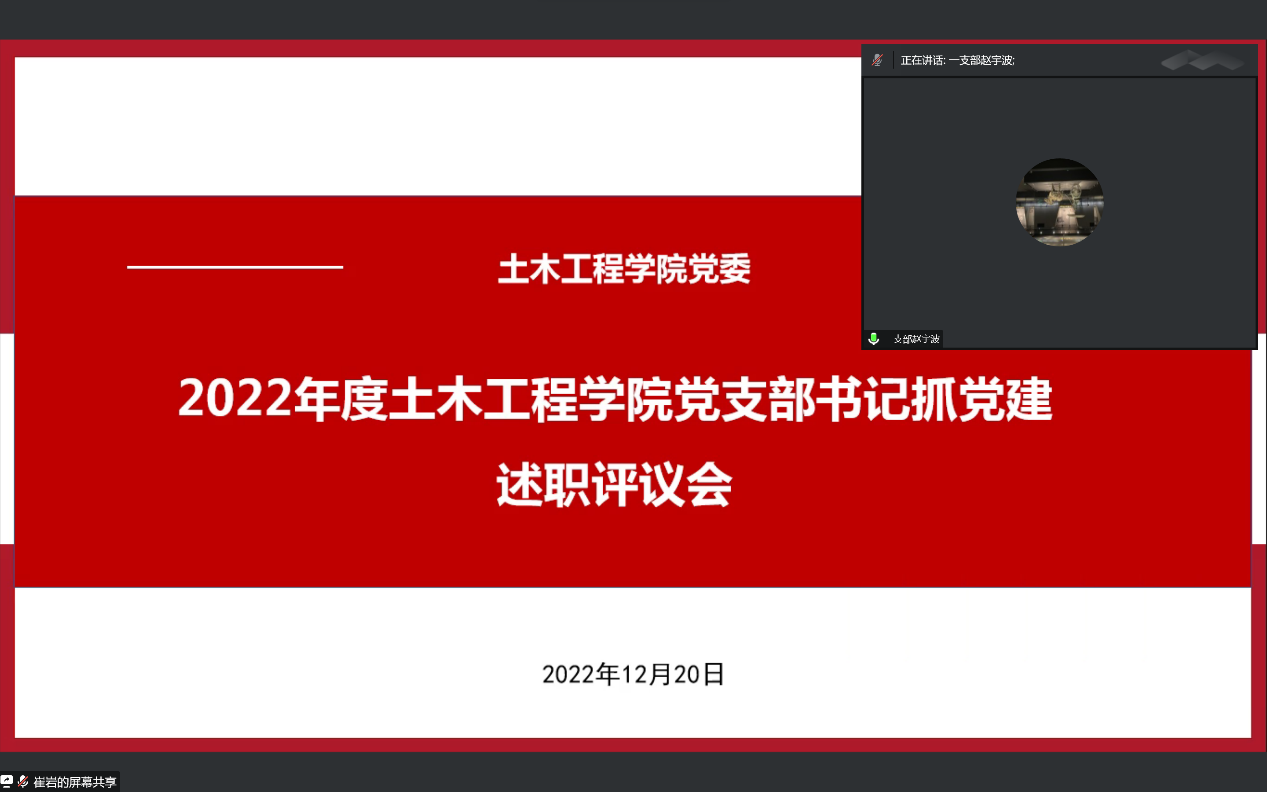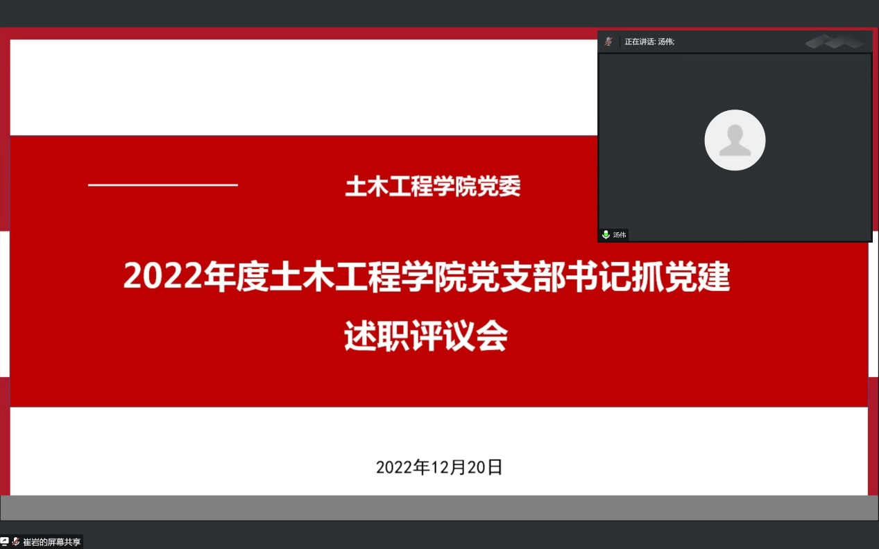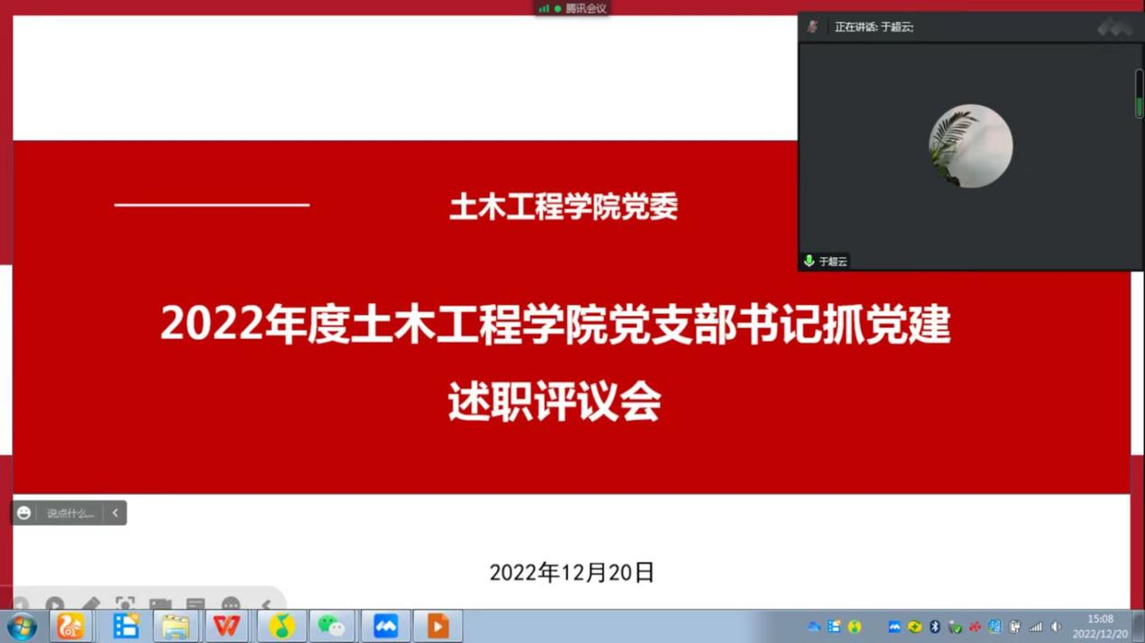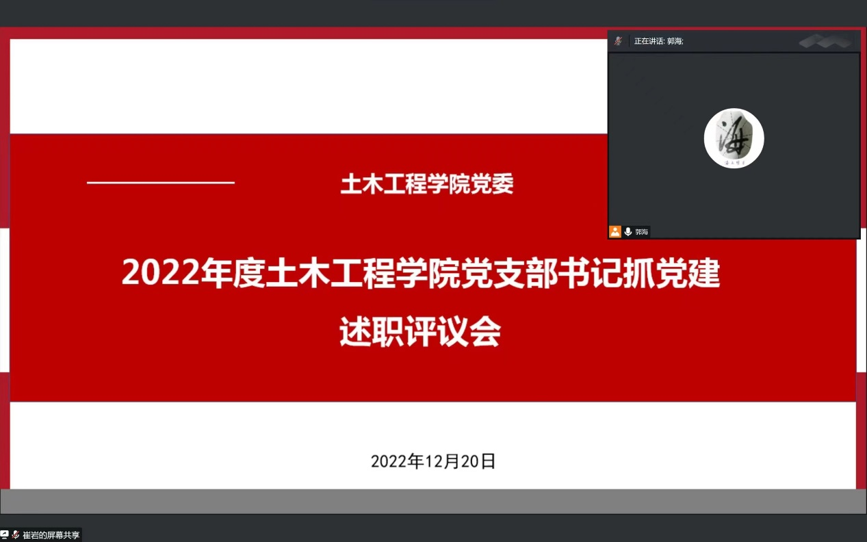 为加强基层党建工作,落实管党治党政治责任,推动全面从严治党向基层延伸,根据公司党委《关于开展2022年度党组织书记抓基层党建述职评议考核工作的通知》要求,公司党委于2022年12月20日下午15:00通过腾讯会议组织召开2022年度党支部书记抓党建工作述职评议大会。公司党委委员、支部委员,师生代表共32人参加会议,会议由党委书记郭海主持。