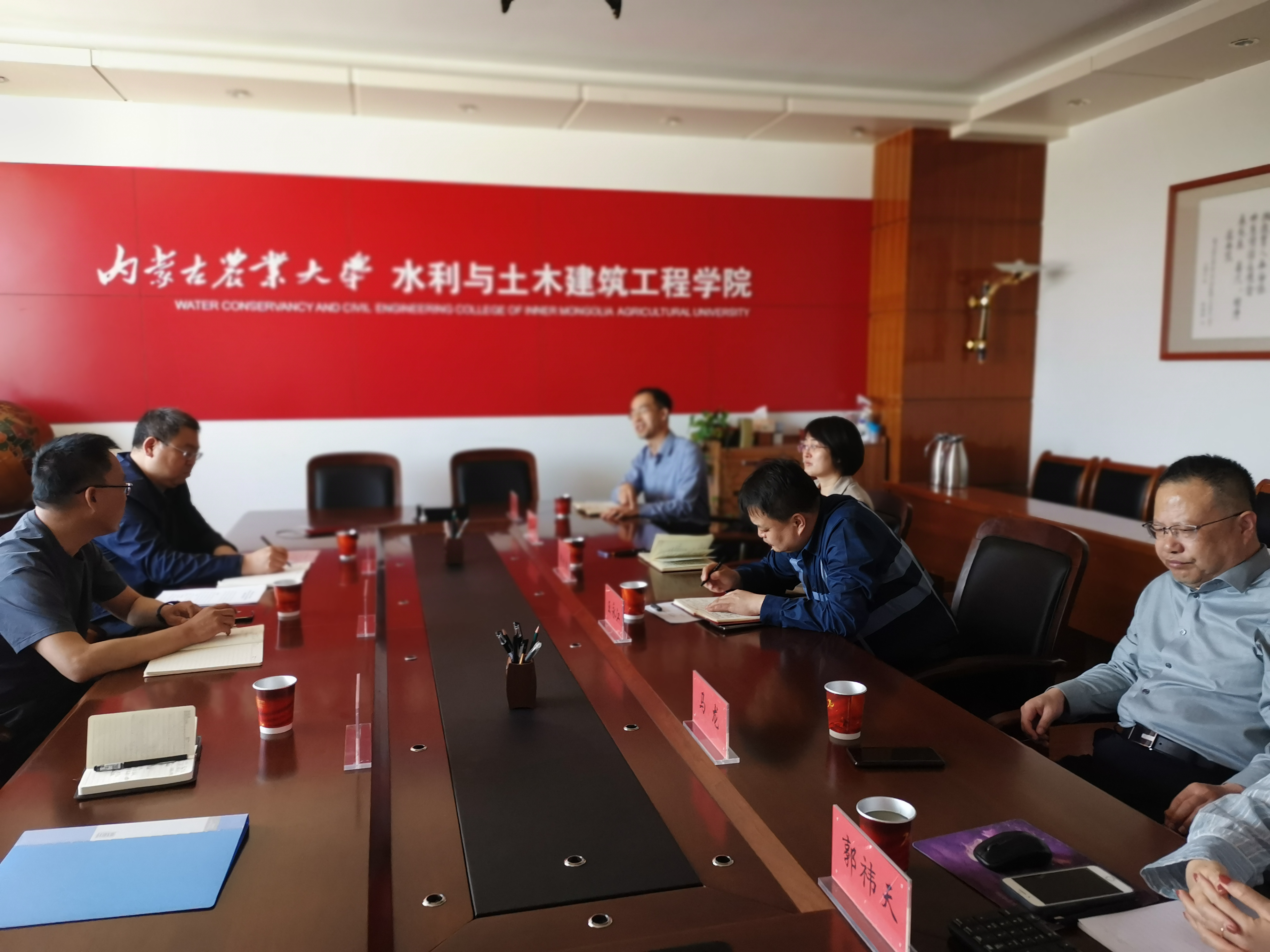 与内蒙古农业大学水利与土木建筑工程公司党委书记王永江进行商洽