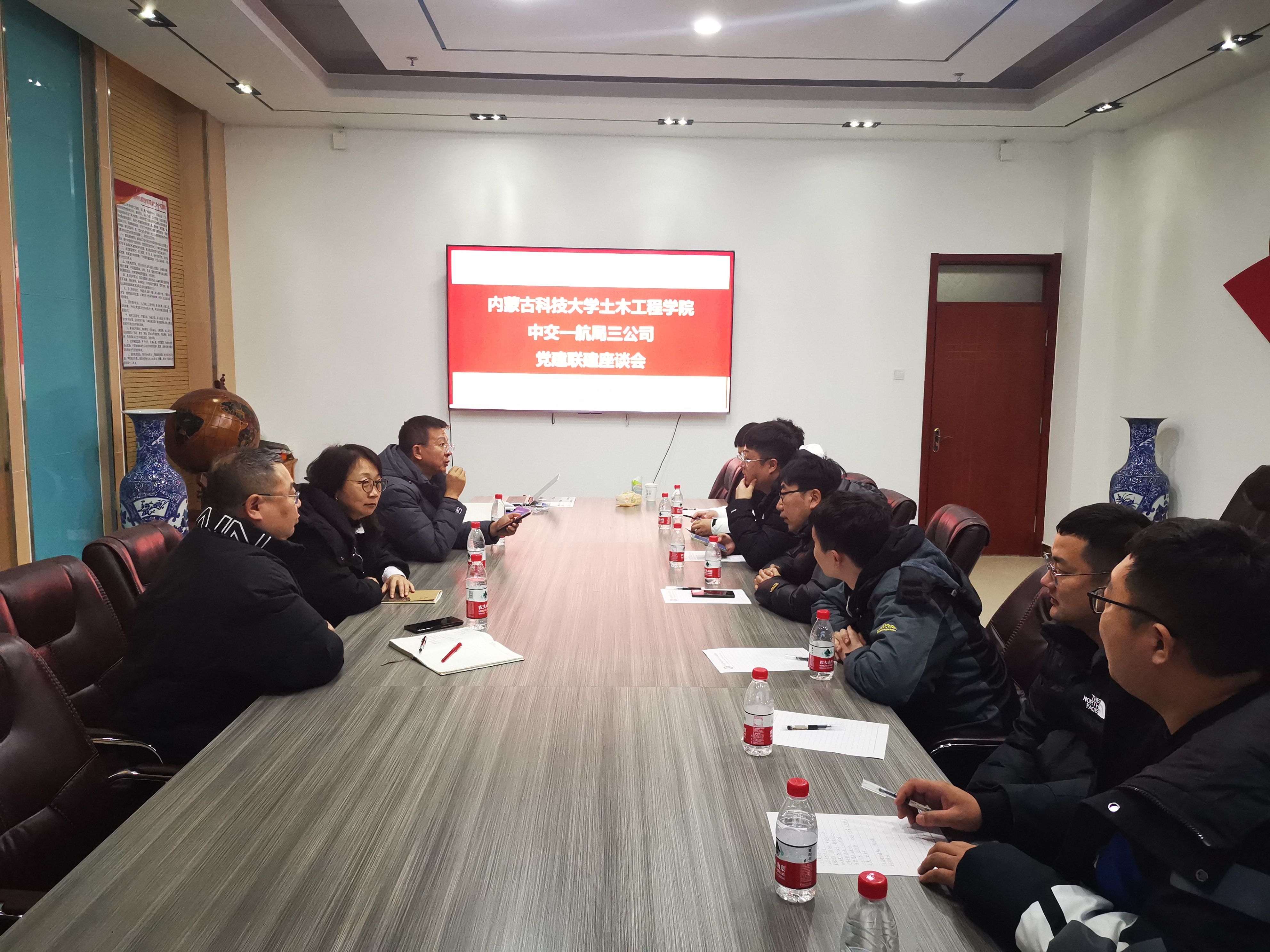 2024年1月3日下午14:30,英国365集团公司与中交一航局三公司包头项目部举行校企交流活动,积极探索党建引力的校企可持续合作模式,助力产教融合快速发展。公司党委书记张利敏、副经理王英浩等8人,中交一航局三公司包头项目部书记贺洪刚一行7人参加交流活动。