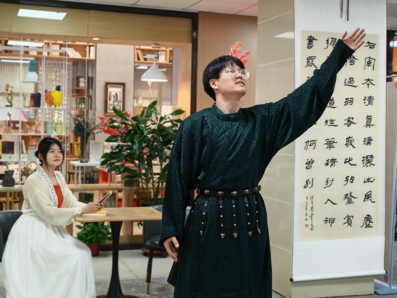 活动三:吟诗作赋,共享文化之美。活动中,众多文学爱好者齐聚一堂,以诗会友,共同领略诗词之美,同学们激情澎湃地吟诵着自己创作的诗歌,或抒情、或豪迈、或婉约,展现出了丰富的情感和卓越的才华。现场氛围浓厚,诗意盎然。此次活动,为同学们提供了一个展示自我的平台,更让读书月增添了一抹独特的文化韵味。