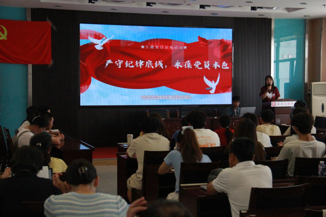 为深入学习贯彻习近平总书记关于党纪学习教育的重要讲话精神,加强党员的自我约束和党性修养,在公司党委组织部和公司党委的指导下,交通力学系教工党支部联合员工第五党支部于2024年7月1日下午3点,在逸夫楼B404举办了“严守纪律底线,永葆党员本色”主题党日示范活动。校内基层党组织代表观摩了此次活动。活动由交通力学系教工党支部书记张新洁同志主持。