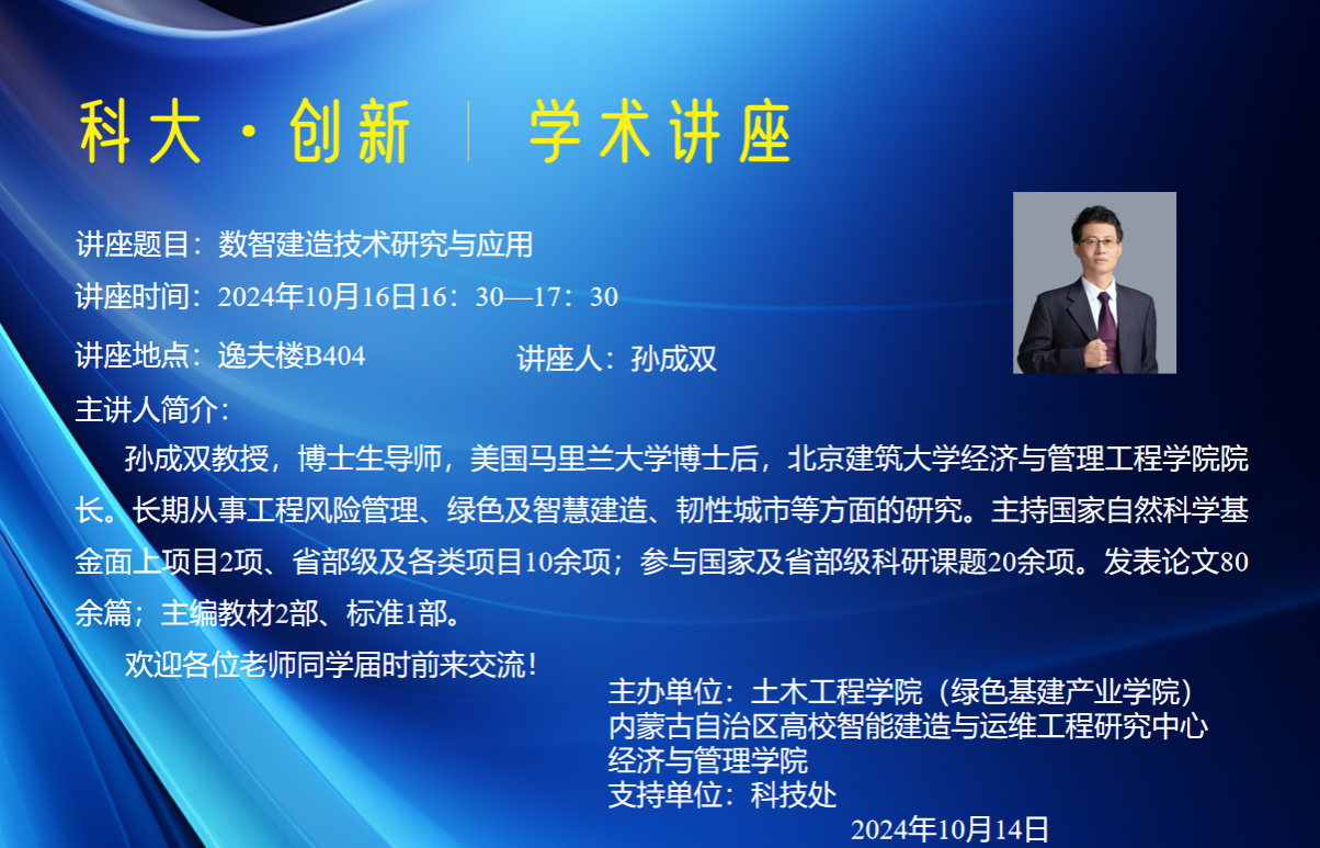 讲座题目:数智建造技术研究与应用