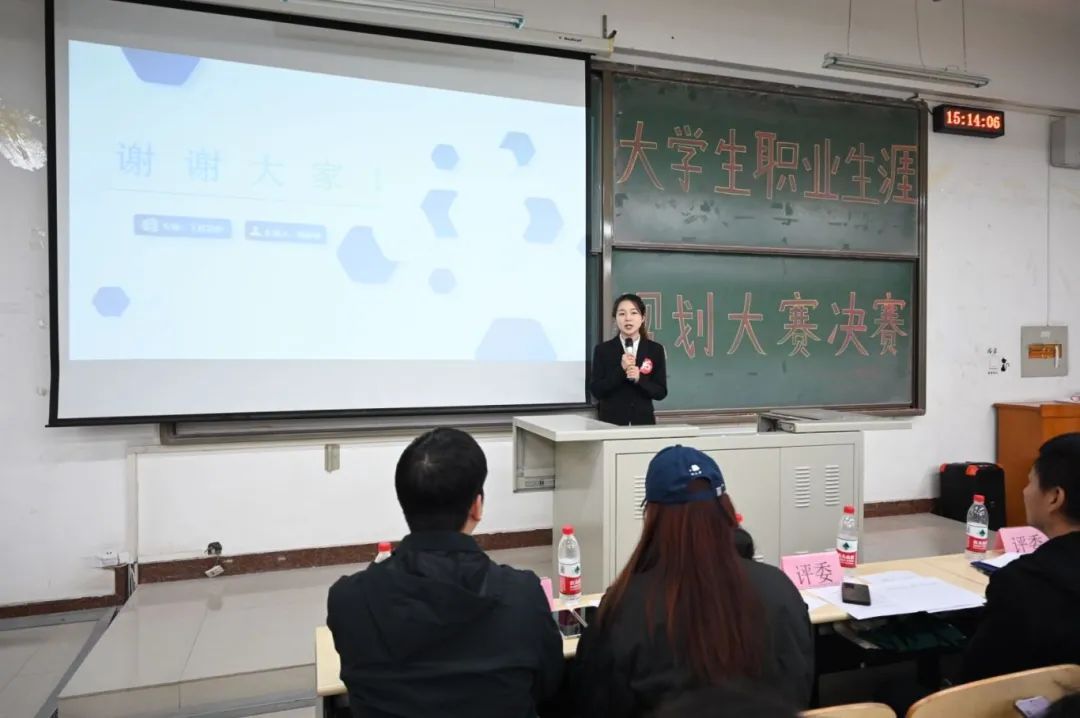 在决赛现场,选手们展现出了卓越的风采。每一个精心设计的职业规划都凝聚着同学们对专业的理解和对未来的期望,他们通过精美的PPT、详实的职业调研资料以及自信的演讲,阐述了各自对未来职业生涯的规划。评委老师们也对选手的职业规划进行点评与指正,有助于选手做出更合理,更细节的规划。