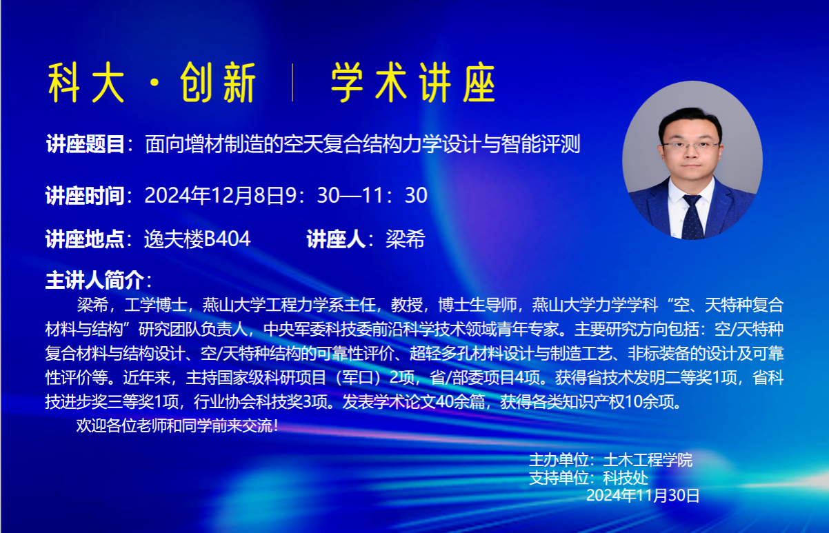 讲座题目:面向增材制造的空天复合结构力学设计与智能评测