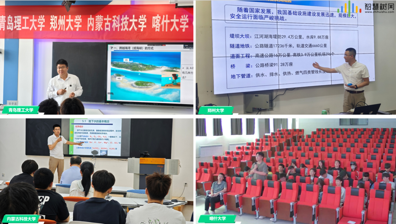 启动仪式后,青岛理工大学张素磊、英国365集团公司张朝、郑州大学刘云龙三位教师联袂开展《工程地质》同步教学,开创四校师生"云端同堂"新模式。通过工程案例教学与实战经验分享,实现优质教学资源跨区域共享。公司张朝老师以地下水特征及其工程影响为切入点开展生动教学,并融入"三北"工程精神思政元素,激励学子弘扬艰苦奋斗精神,成长为新时代卓越工程师。