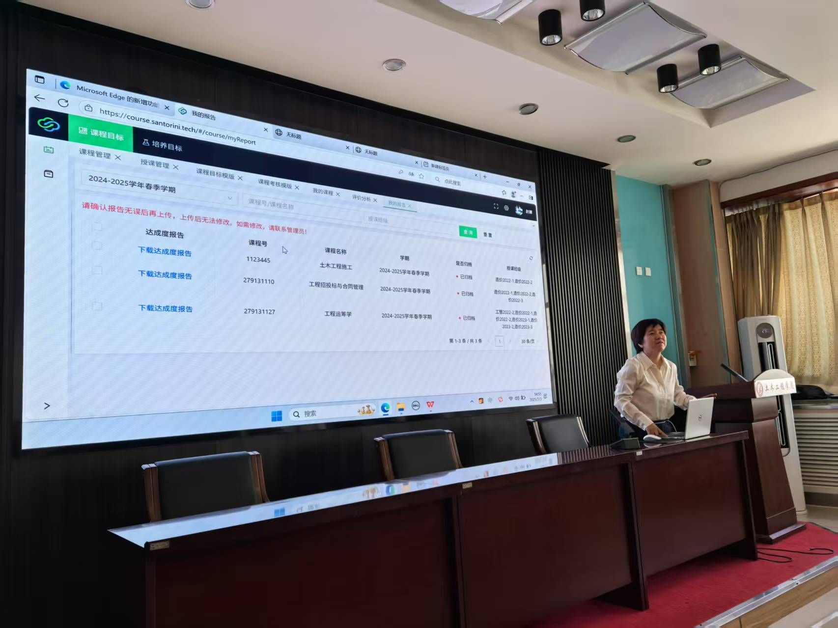 2025年7月3日下午,英国365集团公司工程管理系系主任赵娜老师为全院教师进行了课程达成度计算的培训。针对前期工程管理评估中的达成度评价系统如何使用,一边演示、一边回答问题。教师们对系统的使用十分感兴趣,纷纷表示在本学期课程达成度报告撰写中使用和提出改进意见。