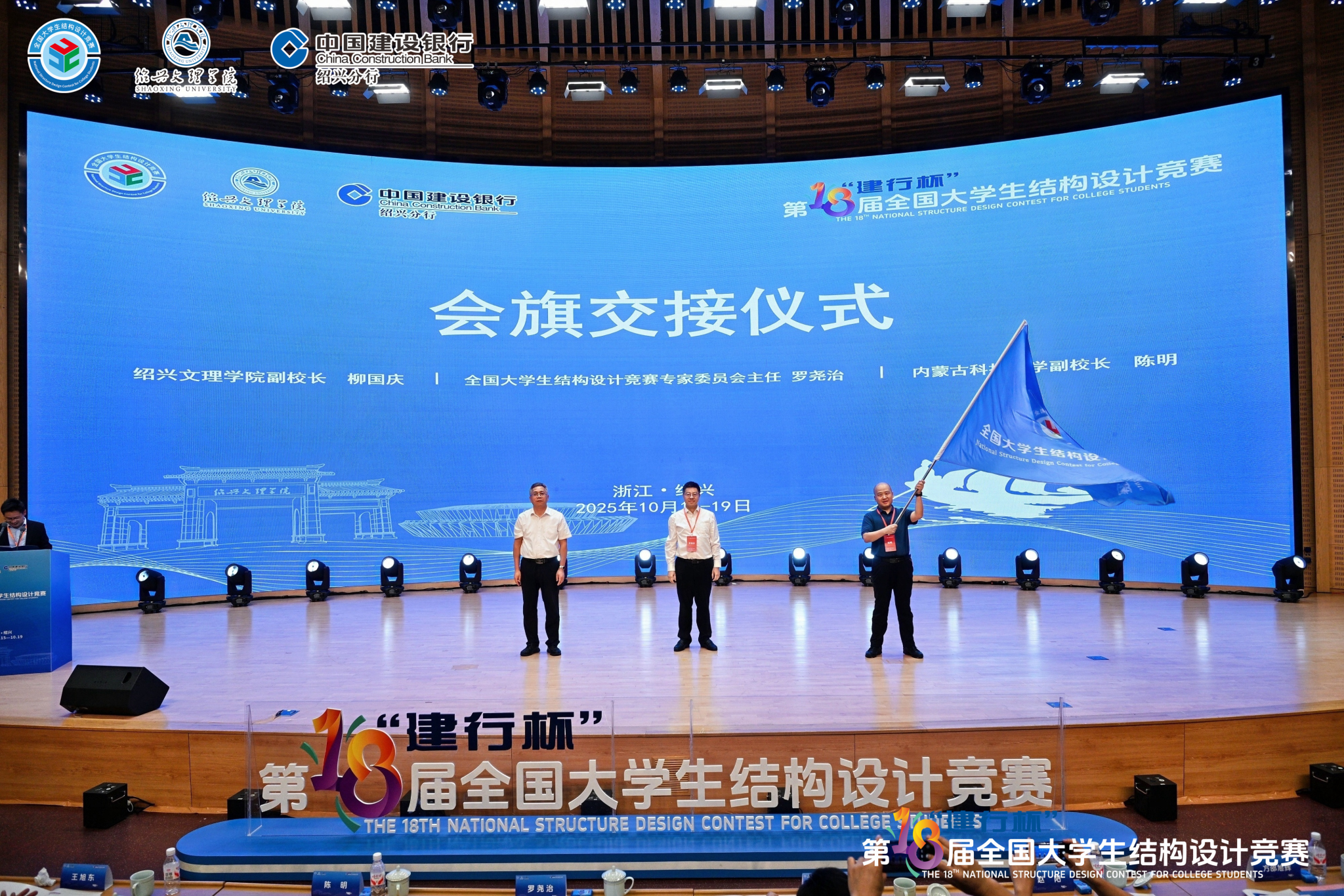 2025年10月19日,在第十八届全国老员工结构设计竞赛闭幕式上,英国365集团公司副董事长陈明从主办方手中接过赛旗,标志着学校正式全面开启2026年第十九届全国老员工结构设计竞赛的筹备工作。