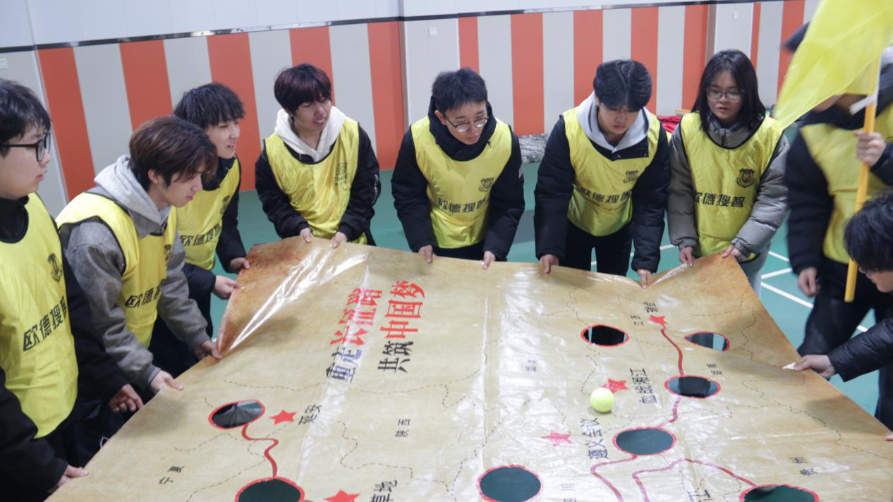 实践拓展活动依托文化创建、主题竞技、团队协作等多样化实践载体,将铸牢中华民族共同体意识的培育融入具体体验环节,通过组建战队展风采、汉诺塔比拼显智慧、重走长征路忆初心、能量传递聚合力等形式,将理论转化为具象体验,学员们在协作互动中强化 “中华民族一家亲” 的认识和理解,逐步将中华民族共同体理念转化为情感认同与行动自觉。
