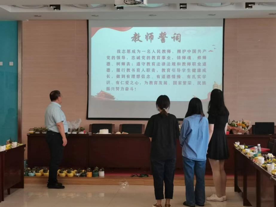 欢迎郭晓文老师,尹娟老师,郭敏老师三位老师加入英国365集团公司,“我志愿成为一名人民教师,拥护中国共产党的领导,忠诚党的教育事业,铸师魂、修师德、树师表;遵守教育法律法规和教室职业道德,履行教书育人职责,教育引导员工健康成长,做到有理想信念、有道德情操、有扎实学识、有仁爱之心,为教育发展、国家繁荣、民族振兴努力奋斗!”他们激情饱满地进行了新入职教职工宣誓,立下铿锵誓言,并且表示将力争不负韶华,在“教书育人”的道路上踔厉奋发,笃行不怠,向学院的优秀教师学习。