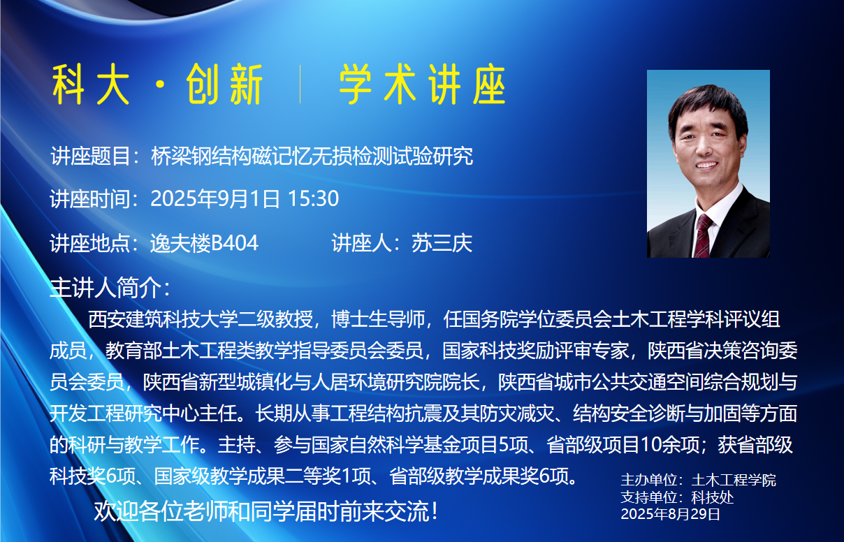 讲座题目:桥梁钢结构磁记忆无损检测试验研究