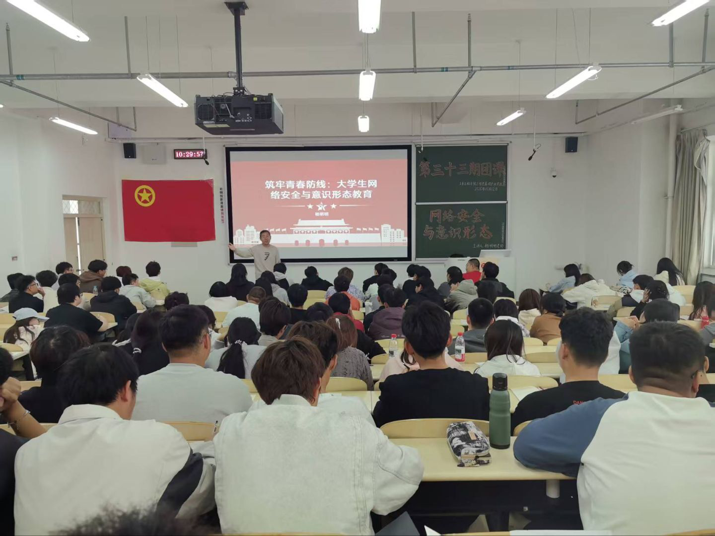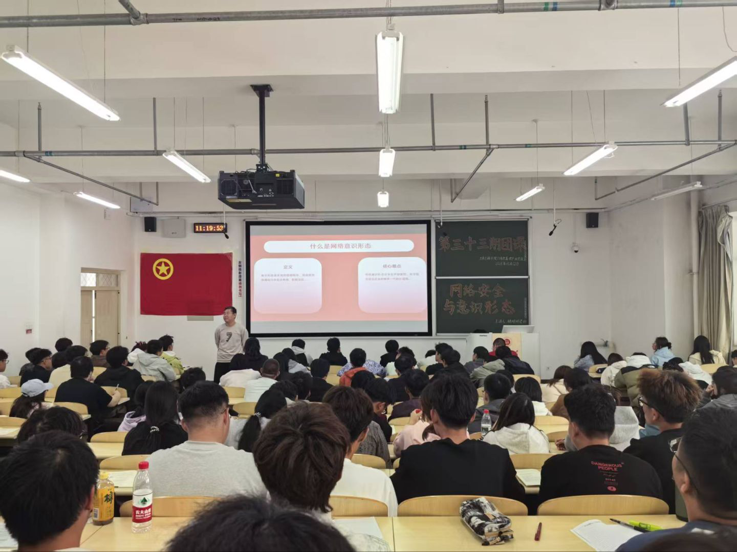 第三十三期团课第二讲开展于2025年10月12日,位于逸夫楼G401教室,在杨明明老师的引领下,学习第二讲:网络安全与意识形态,杨老师告诫青年老员工应加强网络安全意识,守护自身网络安全。
